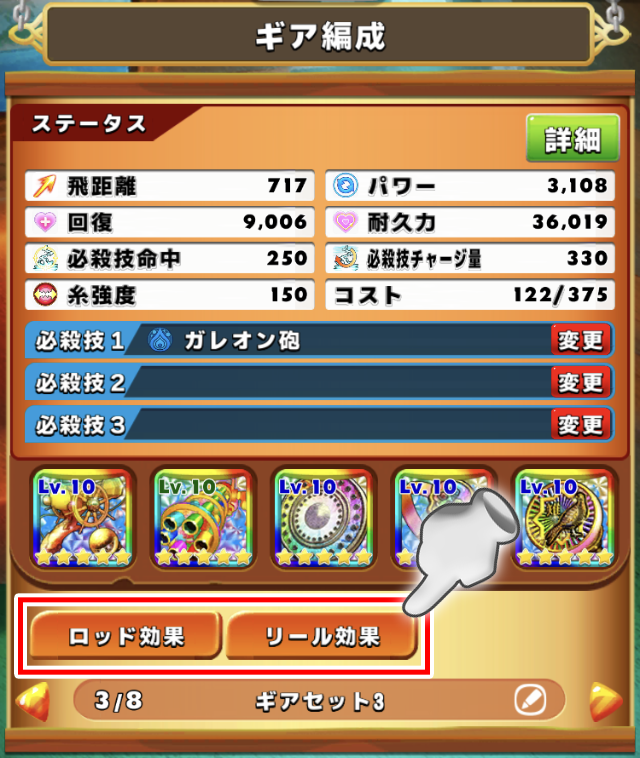 リール効果/ロッド効果は特定のリールとロッドにだけ付与される強力な特殊効果になります。